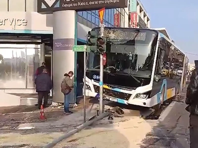 Ατύχημα σημειώθηκε στη λεωφόρο Μεσογείων το απόγευμα της Δευτέρας (27/01) όταν λεωφορείο προσέκρουσε σε φανάρι.