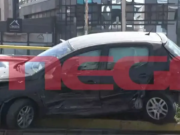Τα δύο αυτοκίνητα συγκρούονται με σφοδρότητα. Μάλιστα, το προπορευόμενο καταλήγει πάνω στα κιγκλιδώματα.
