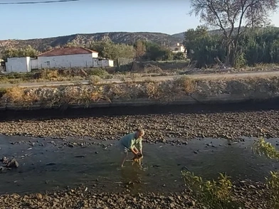 Μέσα στην κοίτη, ένας πολίτης, ο κύριος Χρήστος, προσπαθούσε να σώσει ψάρια, όσα περισσότερα μπορούσε και να τα μεταφέρει σε δεξαμενή με γλυκό νερό.