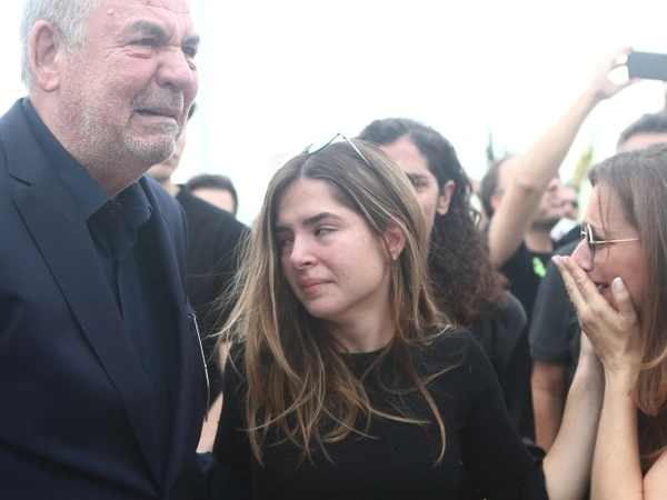 Με δάκρυα στα μάτια αποχαιρετούν τον δικό τους άνθρωπο η σύζυγος του Γιάννη Ιωαννίδη και η κόρη του, Θεοδώρα - Ελένη, η οποία συγκλόνισε με τον επικήδειο λόγο της κατά τη διάρκεια της επιμνημόσυνης δέησης, στον Άγιο Ιωάννη Βούλας.