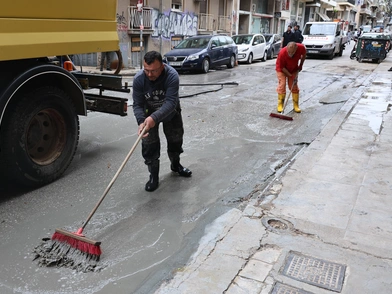 Υγρό τσιμέντο σε δρόμους της Κυψέλης: Διακοπή κυκλοφορίας
