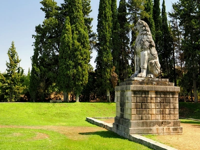 Μάλιστα, ο Λέων της Χαιρώνειας είναι ένα μαρμάρινο βάθρο με έναν μεγάλο λέοντα που συμβολίζει τον ηρωισμό των στρατιωτών της Θήβας στην μάχη της Χαιρώνειας, τον οποίο είχε αναγνωρίσει και ο ίδιος ο Φίλιππος Β'.