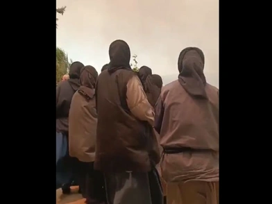 Αστυνομικοί προσπαθούν να πείσουν μοναχές να εκκενώσουν μοναστήρι, το οποίο βρίσκεται κοντά στο πύρινο μέτωπο. Οι ίδιος φαίνεται να αρνούνται να απομακρυνθούν, ενώ αρχίζουν να ψάλλουν.
