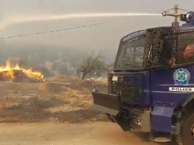 Τις αύρες της αστυνομίας έριξαν οι Αρχές στη μάχη για την κατάσβεση της μεγάλης φωτιάς που καίει αυτή την ώρα στον οικισμό Νέος Πόντος της Μάνδρας.
