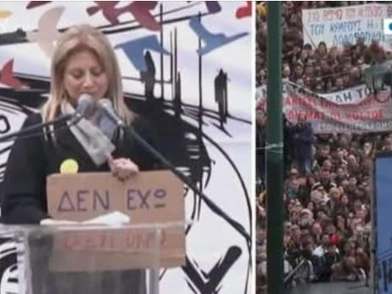 Kρατώντας ένα πλακάτ με μήνυμα «δεν έχω οξυγόνο» η μητέρα της Μάρθης και πρόεδρος του Συλλόγου Θυμάτων, Μαρία Καρυστιανού αναφέρθηκε στον αγώνα των οικογενειών για δικαιοσύνη λέγοντας ότι «ανακαλύψαμε δυνάμεις που αγνοούσαμε ότι υπάρχουν».