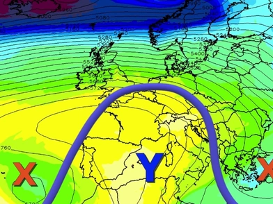 Αιτία για την εξέλιξη αυτή, όπως εξηγεί, είναι «ένα ατμοσφαιρικό βουνό που καθώς το κοιτάμε στους χάρτες καιρού μοιάζει με το κεφαλαίο γράμμα ωμέγα, δίνοντας έναν τύπο εμποδισμού στη μετεωρολογία γνωστός σαν ωμέγα εμποδιστής».