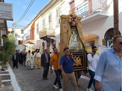 Πλήθος πιστών ακολούθησε την πανηγυρική λιτανεία της Ιερής Εικόνας στους κεντρικούς δρόμους της πόλης της Κορώνης, την οποία συνόδευσαν οι μαθητές των Σχολείων και υπό τις μελωδίες της Αθηναγόριου Φιλαρμονικής.