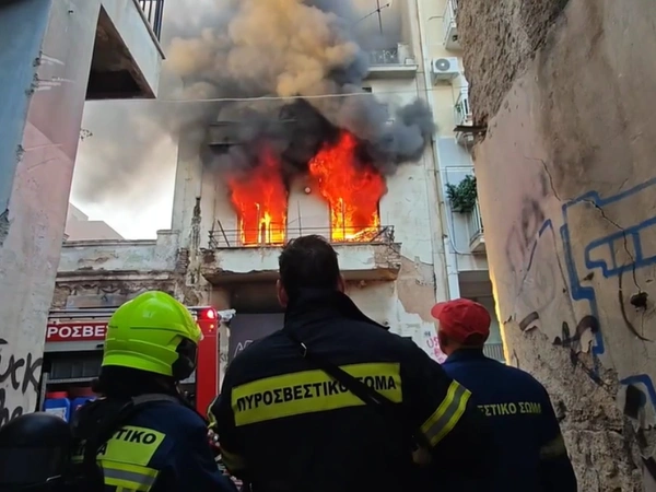 Μεγάλη φωτιά ξέσπασε σε κτίριο της οδού Ελευσινίων, στο Μεταξουργείο, τα ξημερώματα της Παρασκευής.