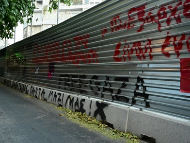 Σύμφωνα με το Orange Press Agency, είχε προηγηθεί προσφυγή κατοίκων των Εξαρχείων στις δικαστικές Αρχές, οι οποίοι διαμαρτύρονταν για την έκταση του εργοταξίου και τον χώρο που καταλαμβάνουν οι λαμαρίνες, λέγοντας ότι δεν προβλέπεται, όπως ο νόμος ρητά αναφέρει, το αναγκαίο διάστημα -επί της Θεμιστοκλέους- ώστε να μπορούν να περνούν οχήματα έκτακτης ανάγκης, όπως τα ασθενοφόρα.