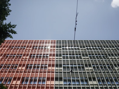 Το κτίριο φωταγωγήθηκε σε τρία χρώματα, που κάθε ένα έχει έναν συμβολισμό: το πορτοκαλί του πολυκαταστήματος, το πράσινο της ελιάς και το λευκό της οδού Βερανζέρου.
