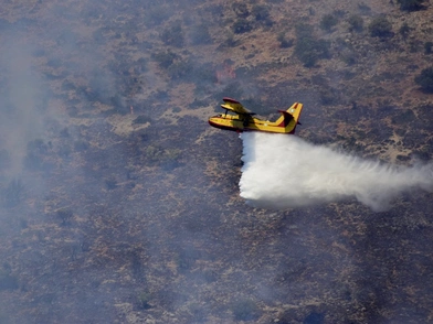 Παράλληλα, στο μέτωπο επιχειρούν εθελοντές και 2 αεροσκάφη, ενώ στο έργο της κατάσβεσης υπάρχει συνδρομή από μηχανήματα έργου ΟΤΑ.