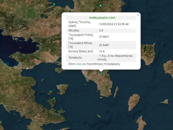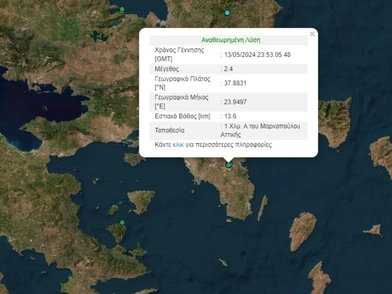 Έντονη σεισμική δραστηριότητα καταγράφηκε τα ξημερώματα της Τρίτης (14/05) στην Αττική και συγκεκριμένα στην περιοχή του Μαρκόπουλου.