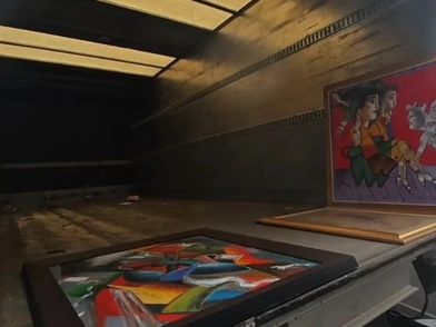 Κατά την έρευνα στην αποθήκη εντοπίστηκαν χρήματα και εκατοντάδες πίνακες, η αυθεντικότητα των οποίων ελέγχεται.