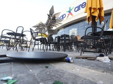 Μεγάλες είναι οι ζημιές που προκλήθηκαν έξω από το γήπεδο. Οι Κροάτες έβαλαν φωτιές σε κάδους και ξερά κλαδιά που βρίσκονταν πλησίον του ανοιχτού πάρκινγκ. Επίσης, έσπασαν τα παρμπρίζ από πάρα πολλά αυτοκίνητα.