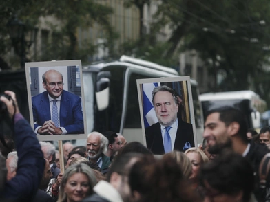 Οι δικηγόροι πραγματοποίησαν πορεία σήμερα Τετάρτη (22/11) στο κέντρο της Αθήνας με πλακάτ που είχαν τις φωτογραφίες του Γιώργου Κατρούγκαλου και του Κωστή Χατζηδάκη, καθώς επίσης και γραβάτες.