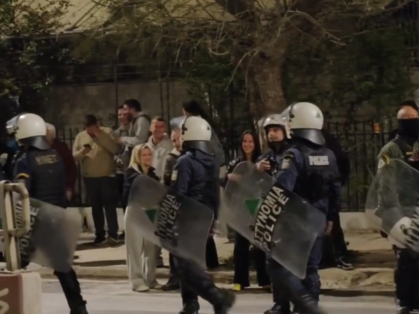 Η εικόνα, όπως καταγράφει βίντεο του Orange Press Agency, είναι τελείως ασυνήθιστη, καθώς ανάμεσα στους πιστούς κυκλοφορούσαν διμοιρίες των ΜΑΤ και υπήρχαν σταθμευμένα περιπολικά.