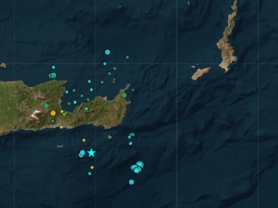Νέος σεισμός, αυτή τη φορά της τάξης των 5 Ρίχτερ, σύμφωνα με την αναθεωρημένη λύση του Γεωδυναμικού Ινστιτούτου, σημειώθηκε σε χερσαία περιοχή της Κρήτης.