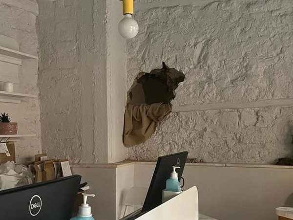 Όπως φαίνεται από τις εικόνες που δημοσίευσε το ίδιο το κοσμηματοπωλείο στον λογαριασμό του στο Instragram, o άγνωστος μπόρεσε να μπει από την τρύπα και το έσκασε με σημαντική λεία.