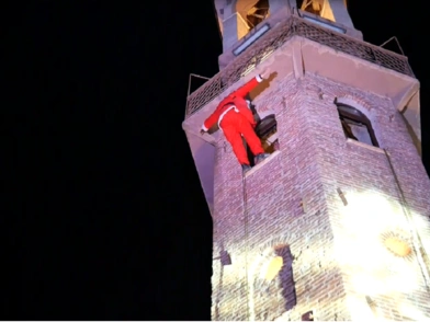 Ο Άγιος Βασίλης των Γρεβενών φαίνεται πως δεν ικανοποιείται με απλές καμινάδες και το έριξε... στα extreme sports. Σε νέο βίντεο του δήμου Γρεβενών, φαίνεται να κατεβαίνει στην πλατεία από τον πύργο του ρολογιού της πόλης, όχι από τα σκαλιά, αλλά με ιμάντες.
