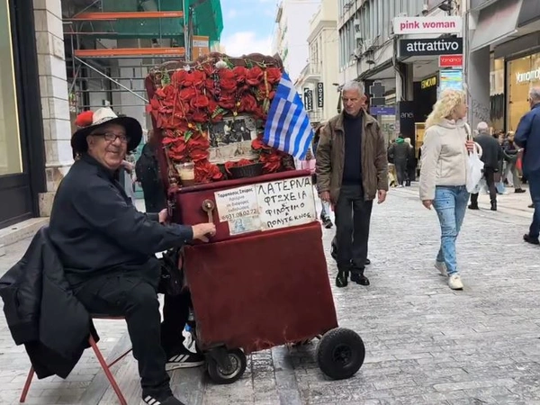 Ανάμεσα στο πολύβοο πλήθος που διασχίζει την Ερμού αυτές τις ημέρες, υπάρχει ένας ήχος που καταφέρνει να «σταματά» τον χρόνο. Είναι ο χαρακτηριστικός, νοσταλγικός ήχος της λατέρνας του Σπύρου Ταραπόσου, του εμβληματικότερου ίσως μουσικού δρόμου της Αθήνας.
