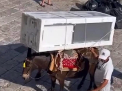 Θλίψη και οργή προκάλεσε η εικόνα ενός γαϊδουριού, το οποίο σύμφωνα με τον δήμαρχο Ύδρας είναι μουλάρι, το οποίο κουβαλούσε ένα ψυγείο.