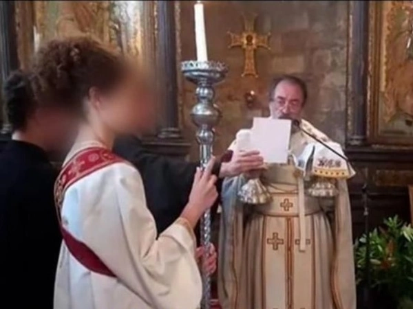 Σύμφωνα με την εκπομπή TLive, το μυστήριο τέλεσε ο πάτερ Αλέξανδρος Καριώτογλου, ο οποίος τον περασμένο Ιούνιο είχε προκαλέσει κύμα αντιδράσεων όταν έντυσε δύο κορίτσια «παπαδάκια». Μάλιστα, τότε ύστερα από απόφαση της Αρχιεπισκοπής, ο ιερέας είχε τεθεί για δύο εβδομάδες σε αργία από τα καθήκοντά του.