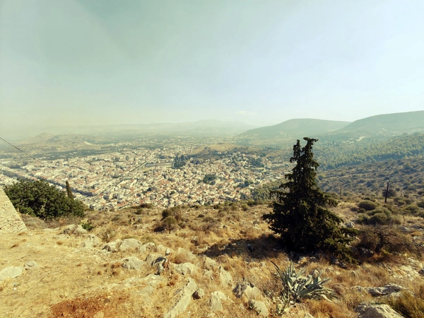 Σε φωτογραφίες από το Ναύπλιο διακρίνεται ένα πέπλο καπνού να έχει σκεπάσει την περιοχή, θολώνοντας την ατμόσφαιρα.