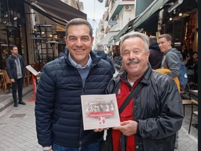 Ο Καλπουζάνης, που έχει γράψει τη δική του ιστορία στον σύλλογο ως ποδοσφαιριστής και προπονητής, χάρισε στον Τσίπρα το φρεσκοκυκλοφορημένο βιβλίο του δημοσιογράφου Τάσσου Σταθόπουλου (εκδόσεις «Το Δόντι»), αφιερωμένο στα 100 χρόνια του Ολυμπιακού Πατρών.