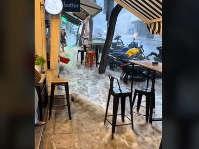 Σε βίντεο που αναρτήθηκε στο Tik Tok διακρίνεται η οδός Μαρασλή, ένας κατηφορικός δρόμος δίπλα από το νοσοκομείο «Ευαγγελισμός», να έχει μετατραπεί σε χείμαρρο, παρασέρνοντας καρέκλες και άλλα αντικείμενα στο πέρασμά του.