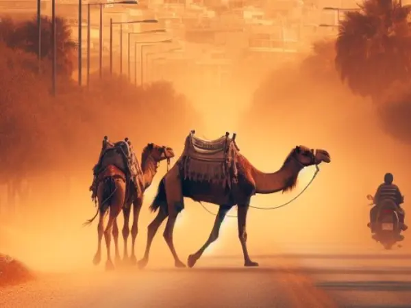 Η Ελληνική Αστυνομία, μέσα από τον λογαριασμό της στο Twitter ενημερώνει τους οδηγούς για την κίνηση στους δρόμους δημοσιεύοντας μία εικόνα με την «πνιγμένη» στην Αθήνα σκόνη, στην οποία κυκλοφορούν... καμήλες.