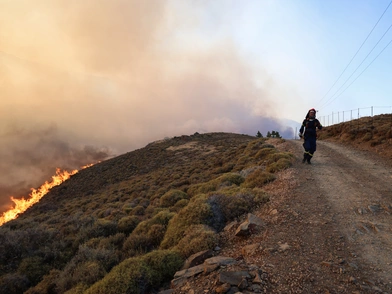 Αντίστοιχα, σε εικόνες που μετέδωσε νωρίτερα το Orange Press Agency από την Παναγία Ευρετή, έξω από το Βαρβάσι της Χίου, κάτοικοι με κουβάδες, λάστιχα, βέργες και τσάπες βρίσκονται σε απόσταση αναπνοής από τη φωτιά.