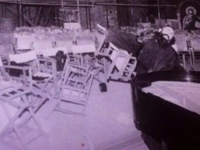 «Η συναυλία ήταν προγραμματισμένη για τις 9 το βράδυ κι εμείς ήμασταν από νωρίς στο χώρο για να το διαμορφώσουμε για την συναυλία. Δύο-τρεις ώρες πριν άρχισε σιγά σιγά να συρρέει κόσμος, φανατικοί, θρησκόληπτοι, μοναχοί και αμέσως καταλάβαμε πως δεν θα είναι ήσυχη η βραδιά. Το πλήθος έβριζε και κατάφεραν να σπάσουν την πόρτα αφού με εξαίρεση κάποιους αρχαιολόγους που προσπάθησαν να βοηθήσουν, δεν υπήρχε αστυνομία για προστασία. Ξαφνικά μπροστά μας βρέθηκε ένα πλήθος αλαλάζων κι ένας παρανοϊκός ρασοφόρος μοναχός μια φυσιογνωμία απόκοσμου σαν τους χαρακτήρες του Ντοστογιέφσκι μέσα σε ένα θρησκευτικό παραλήρημα γκρεμίζει ότι βλέπει μπροστά του και κάποια στιγμή έβγαλε ένα μαχαίρι και άρχισε μανιακά να μαχαιρώνει το πιάνο πριν χωθεί μέσα στο πλήθος και διαφύγει».