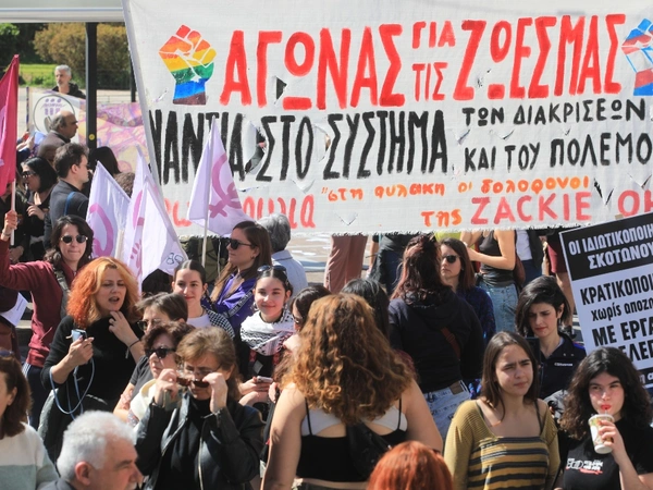 Συγκέντρωση στην πλατεία Κλαυθμώνος πραγματοποιούν οργανώσεις και σωματεία από τον χώρο του φεμινισμού και των δικαιωμάτων, τιμώντας την 8η Μάρτη, Παγκόσμια Ημέρα της Γυναίκας.