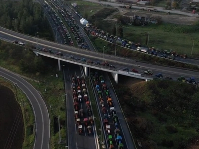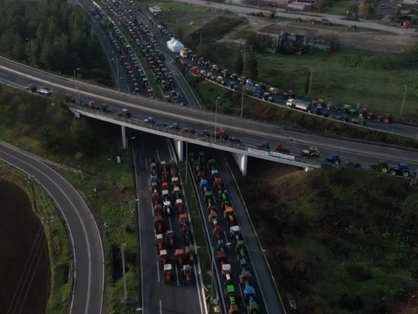 Εκατοντάδες τρακτέρ έχουν παραταχθεί σε πυκνούς σχηματισμούς, κλείνοντας τον νευραλγικό οδικό άξονα και στέλνοντας το δικό τους μήνυμα στην κυβέρνηση.