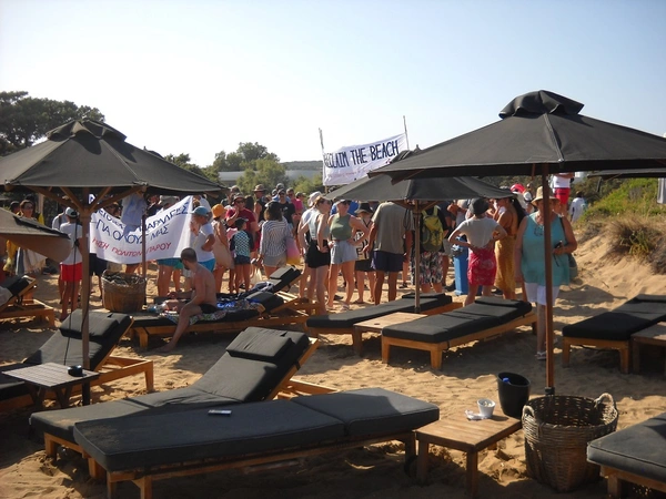 Συμβολική διαμαρτυρία στην παραλία Σάντα Μαρία, στην Πάρο, πραγματοποίησαν την Κυριακή περίπου 300 άτομα. Συγκεκριμένα άπλωσαν τις πετσέτες τους μπροστά στις πολυθρόνες και τις ξαπλώστρες που είχε βάλει beach bar, χωρίς όμως τη σχετική άδεια, όπως καταγγέλλουν.