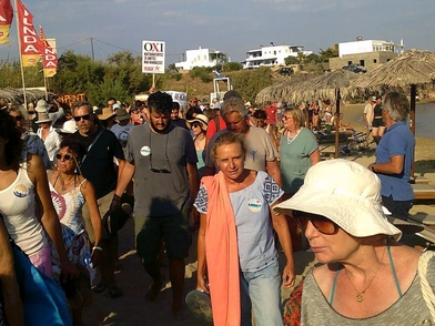 Κρατώντας πανό και πλακάτ ζήτησαν ελέυθερες παραλίες και όχι ξαπλώστρες και καθίσματα επί πληρωμή. «Ιστορικά είναι η πρώτη παραλία που κακοποίησε τον τουρισμό και το περιβάλλον, η πρώτη που άπλωσε τις πολυθρόνες μέχρι τη γραμμή της θάλασσας, η πρώτη που επιδόθηκε σε μια φοβερή και αδίστακτη ηχορύπανση» ανέφερε χαρακτηριστικά ο Χρήστος Γεωργούσης, μέλος του κινήματος.