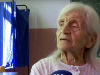 Η Σταυρούλα Μπραζιώτη αστειεύτηκε στην κάμερα όταν η ρεπόρτερ τη ρώτησε για την ηλικία της: «ε, μικρούλα είμαι, μικρή, 104 ετών».