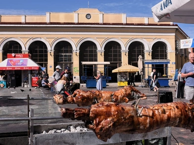 Χαρακτηριστικές οι εικόνες από το κέντρο της Αθήνας και το Μοναστηράκι, με τα καταστήματα εστίασης να έχουν στήσει ψησταριές πάνω στην πλατεία. Αρνιά, κατσίκια, κοκορέτσια, κοντοσούβλια και συκωταριές είναι στο μενού, με τους τουρίστες να εντυπωσιάζονται από το έθιμο να φωτογραφίζουν τις σούβλες.