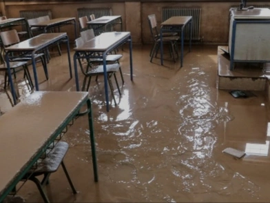 Φωτογραφίες από τις πλημμυρισμένες σχολικές αίθουσες