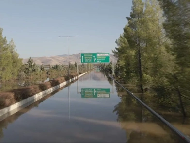 Σε νέο βίντεο από drone που αναρτήθηκε στα social media αποτυπώνεται το μέγεθος της καταστροφής. Το οδόστρωμα βρίσκεται σε κάτω από τα λασπόνερα που κατακλύζουν την πεδιάδα δεξιά και αριστερά.