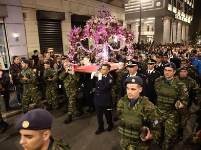 Παράλληλα, εκατοντάδες πιστοί παρέστησαν για μια ακόμη χρονιά στη ξεχωριστή περιφορά του Επιταφίου που πραγματοποιήθηκε στο Α' Νεκροταφείο Αθηνών.