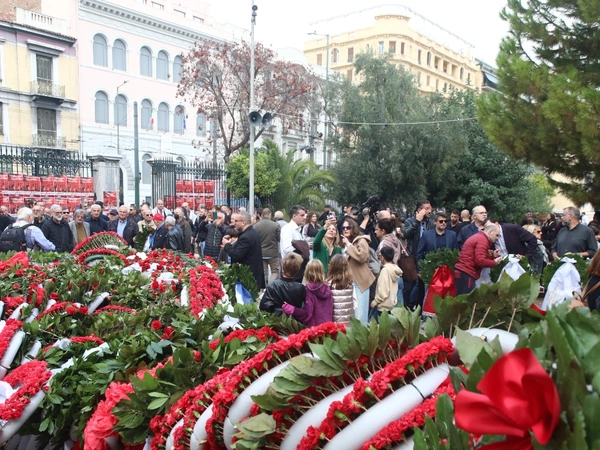 Από νωρίς το πρωί, χιλιάδες πολίτες κάθε ηλικίας επισκέπτονται τον ιστορικό χώρο στην οδό Πατησίων για να αφήσουν ένα λουλούδι στο μνημείο και να αποτίσουν φόρο τιμής στους αγωνιστές του 1973.