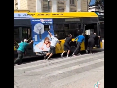 Όπως φαίνεται και στο βίντεο που ανήρτησαν χρήστες των social media, επιβάτες, περαστικοί και ποδηλάτες έσπρωξαν το όχημα, απομακρύνοντάς το από τον δρόμο, προκειμένου να συνεχιστεί ο ποδηλατικός γύρος.