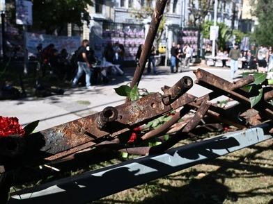 Η φετινή επέτειος συμπίπτει με τις δραματικές εξελίξεις στη Μέση Ανατολή έτσι στο χώρο είναι έντονο το χρώμα της Παλαιστινιακής αντίστασης με σημαίες και πανό, αφιερωμένα στον αγώνα των Παλαιστινίων στην περιοχή.