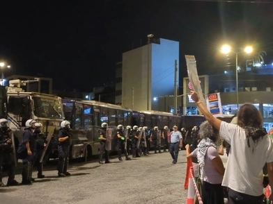 Σκηνικό μικροέντασης εκτυλίχθηκε κατά τη διάρκεια της πορείας αλληλεγγύης στην Παλαιστίνη και στον Λίβανο, η οποία ξεκίνησε από το πάρκο Ελευθερίας και είχε ως τελικό προορισμό την πρεσβεία του Ισραήλ στη λεωφόρο Κηφισίας.