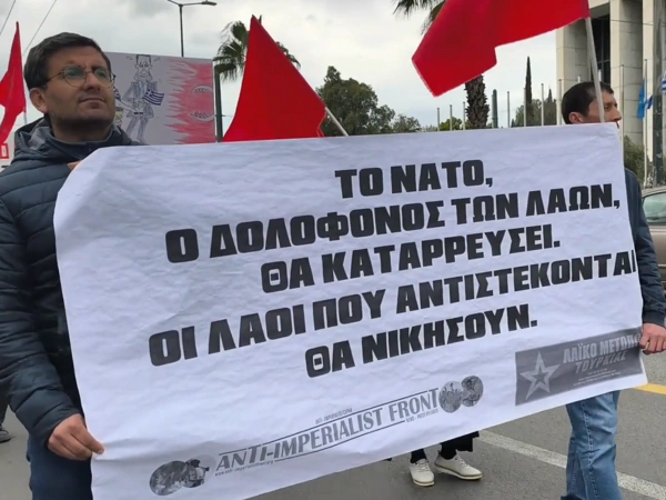 «77 χρόνια ΝΑΤΟ είναι αρκετά. Ο ιμπεριαλιστικός άξονας ΗΠΑ - ΝΑΤΟ - Ε.Ε. επιτίθεται στο Ιράν, στην Παλαιστίνη, στην Υεμένη και το Λίβανο. Το ΝΑΤΟ απειλεί να σύρει ολόκληρη την ανθρωπότητα σε έναν Γ' Παγκόσμιο Πόλεμο», ανέφεραν χαρακτηριστικά τα καλέσματα των οργανώσεων.