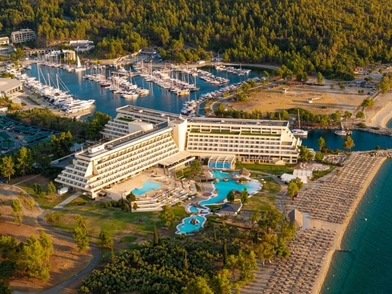 Βρίσκεται πλάι σε μια αμμώδη ακτογραμμή μήκους 9 χιλιομέτρων και περιτριγυρισμένο από μια κατάφυτη έκταση 18.000 στρεμμάτων, με κήπους κάτω από τη σκιά των πεύκων που ντύνουν τις πλαγιές του όρους Μελίτων. Οι εγκαταστάσεις του περιλαμβάνουν ένα γήπεδο γκολφ 18 οπών, τον μεγαλύτερο αμπελώνα βιολογικής καλλιέργειας στην Ελλάδα, ένα κέντρο θαλασσοθεραπείας και ευεξίας, εστιατόρια με γαστρονομία υψηλού επιπέδου, καζίνο και μαρίνα που παρέχει ολοκληρωμένες υπηρεσίες. Επιπλέον, μια μεγάλη γκάμα αθλητικών και πολιτιστικών δραστηριοτήτων σε στεριά και θάλασσα είναι διαθέσιμη σε επισκέπτες κάθε ηλικίας.