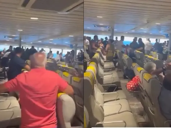 Το βίντεο που καταγράφει την άγρια συμπλοκή μεταξύ της ομάδας των 14 και άλλων επιβατών, κάνει τον γύρο του διαδικτύου.