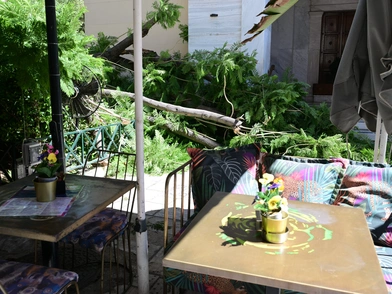 Παράλληλα, ο σερβιτόρος του μαγαζιού δήλωσε ότι έπεσαν τα κλαδιά στις ομπρέλες. «Πάλι καλά δεν ήρθε στα κεφάλια μας», δήλωσε χαρακτηριστικά ενώ στη συνέχεια είπε ότι ο υπόλοιπος κορμός κατέρρευσε αργότερα πάνω στο τραπέζι που καθόταν η γυναίκα.