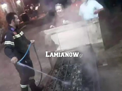 Άφωνοι έμειναν το βράδυ της Κυριακής (06/08) παρευρισκόμενοι σε εκδήλωση Πολιτιστικού Συλλόγου στη δυτική Φθιώτιδα και πιο συγκεκριμένα στο χωριό Πλατύστομο, όταν είδαν έναν Πυροσβέστη να σβήνει... την ψησταριά με τα σουβλάκια, που μοιράζονταν στην εκδήλωση.